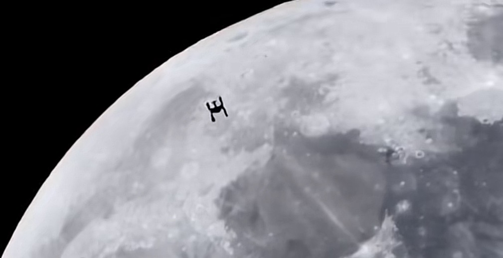 It is amazing to be able to see the space station from Earth with the terrains of the Moon from a commercial camera.
